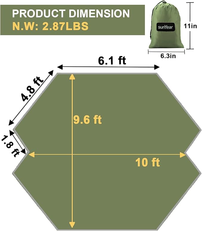 - Versatile Uses:As perfect camping companion ,the multifuntional tent tarp can be used hammock shelter, outdoor kitchen cover,tent footprint, ground cloth, sunshade, picnic mat for backpacking, hiking, camping, trekking or traveling in all season.