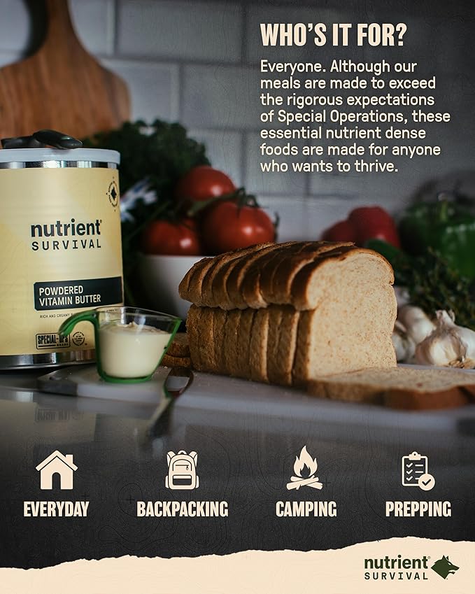 - SPECIAL OPS GRADE NUTRITION: Our soy & gluten free butter made with real real butter and milk, and is packed with 13 essential vitamins and 3 minerals in each serving. This freeze dried butter is a staple survival food for every prepper’s pantry