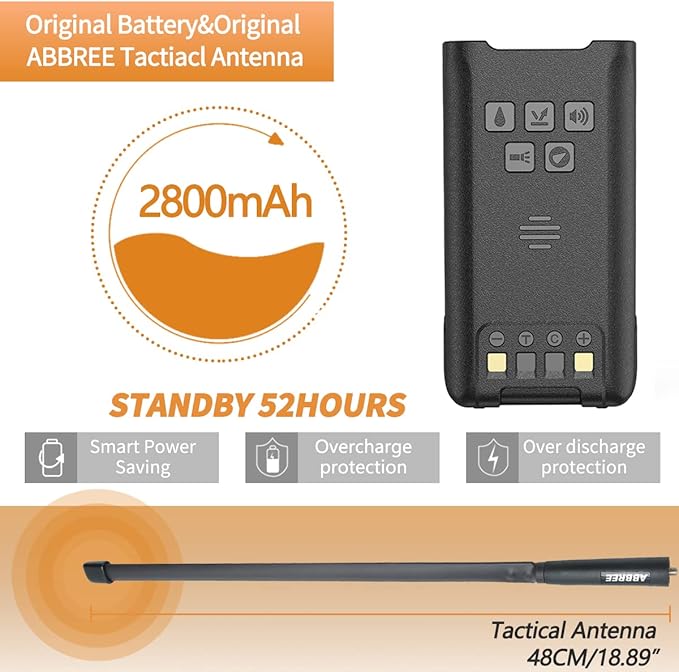 - ★【High Gain Tactical Antenna&High Quality Speaker Micphone】With 18.8inch/48cm Waterproof Foldable CS Tactical Antenna, This CS Tactical Antenna is almost 48CM long and is a flexible antenna able to withstand more 'roughness' than other antennas, all while boosting the signal of your radio significantly! With ABBREE 780 Speaker Micphone can hands free!