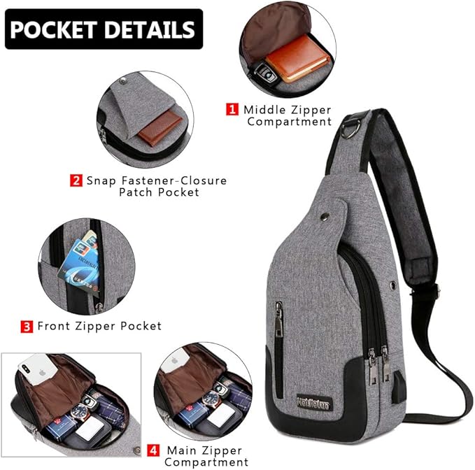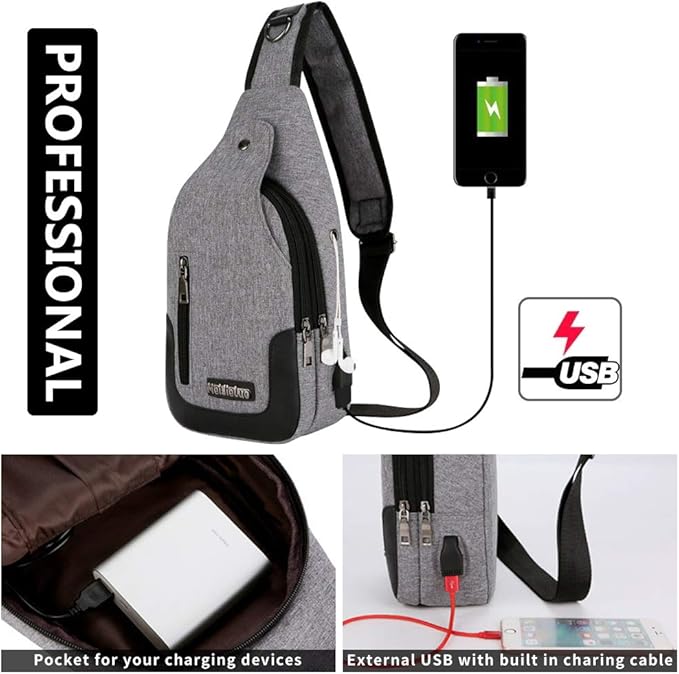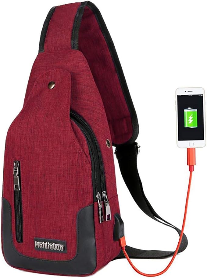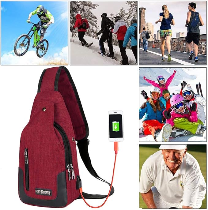 - PROFESSIONAL DESIGN - Our medium size sling backpack bag with usb charging port can be folded as a small size pack and expanded to a large bag. Lightweight(0.66lb) and portable, great for the gym and travel. Compared with other ordinary oversized sling bag, our chest bag adopts upgraded design: reinforced strap, flawless hardware zipper bag and perfect workmanship make it your great choice! Featured with front snap fastener to protect your stuff more safely and D ring hang buckle for hanging.