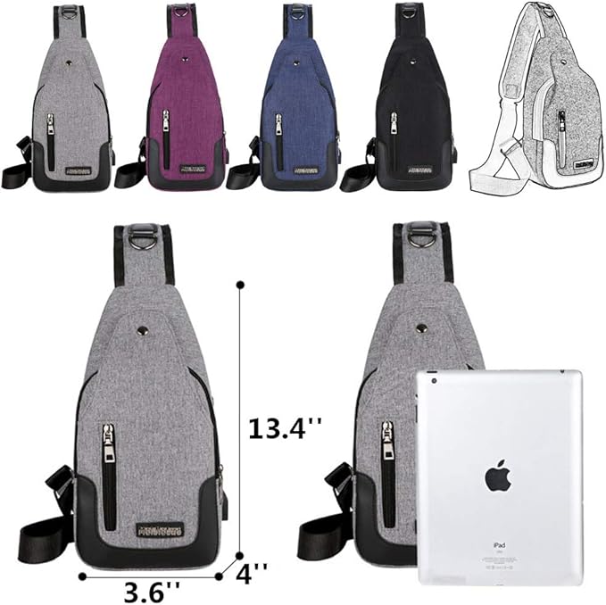 - EXTERNAL USB INTERFACE AND EARPHONE HOLE - External USB with built-in charging cable. You can easily and conveniently charge your phone, tablet and other devices without opening up the backpack. Also coming with charging cable and the earphone jack, listen the music more conveniently. The dimension of this crossbody backpack bag is 3.6 x 4 x 13.4''. MULTIPLE PURPOSES - Our travel hiking day packs are great as an every-day -carry bag for multiple purposes like daily use, mommy bag, shopping, etc.