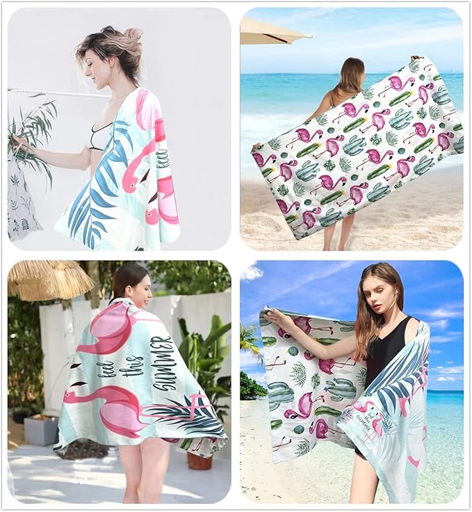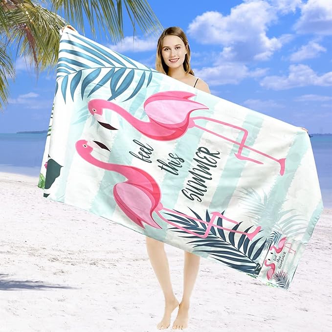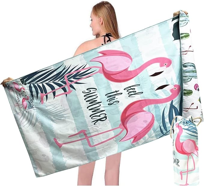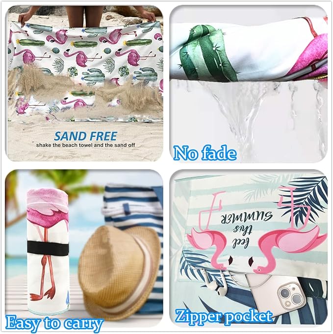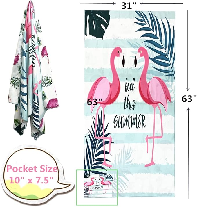 Beach Towel Oversized,Thin Microfiber Beach Towel ,Super Absorbent Quick Dry Sand Free Cute Flamingo Cool Swim Beach Towels for Kids,Men,Women,Boys,Girls with Zipper Pocket Travel Bag (flamingos)