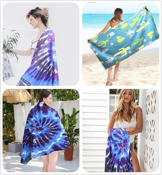- 【SAND FREE CONVENIENT TO CARRY】:Amazing micro beach towel ! It’s lightweight and folds up small which is a huge space saver when trying to pack light for the beach. It’s sand resistant too.Our no sand beach towel have many patter for you choice,such as elphant beach towel,mermaid beach towel,flamingos beach towel,tie dye beach towel,Dinosaur microfiber beach towel