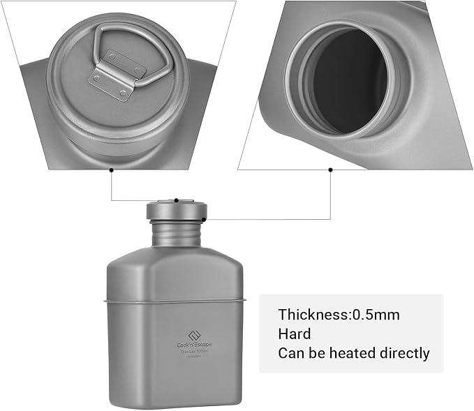 COOK'N'ESCAPE Titanium Camping Cookware Titanium Canteen Mess kit, Camping Canteen with Pot and Pan Set, Portable Lightweight Cookware for Outdoor Hiking Backpacking Picnic