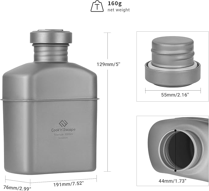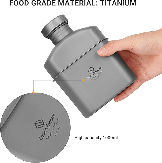 - Extremely Lightweight and Healthy: The canteen is only 160g, extremely lightweight, and it based on the canteen used by past military forces, give you a wonderful camping hiking experience.Titanium is a biophilic metal, free of heavy metals, non-toxic and harmless.