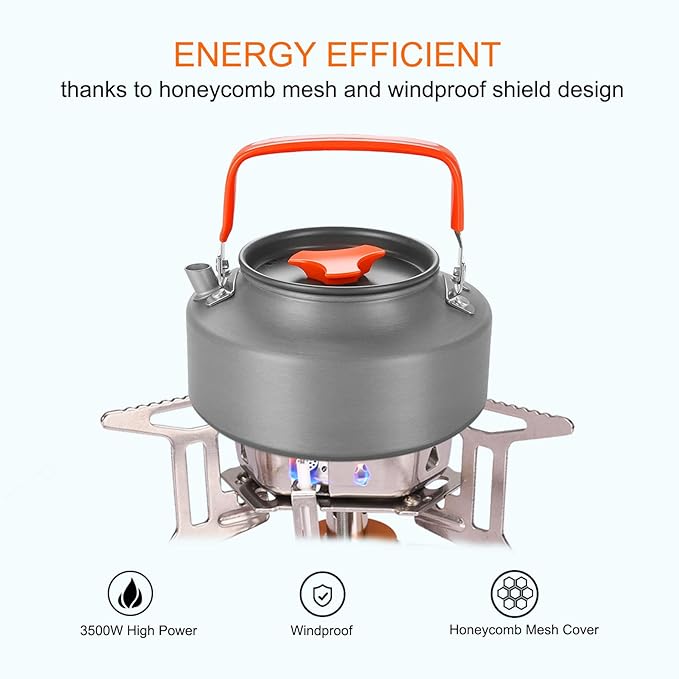 - [High-Efficiency] Honeycomb mesh cover can help improves the combustion efficiency, save fuel. Windproof shield on the camping stove design reduces effect of strong winds on the flame, making it more efficient in windy weather.