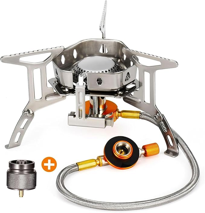 - [Wide Compatibility] Comes with a camping stove adapter, making the portable backpacking stove can work with 7/16 thread butane-propane mixed fuel canisters (EN 417) and 16oz/1LB propane small tank.