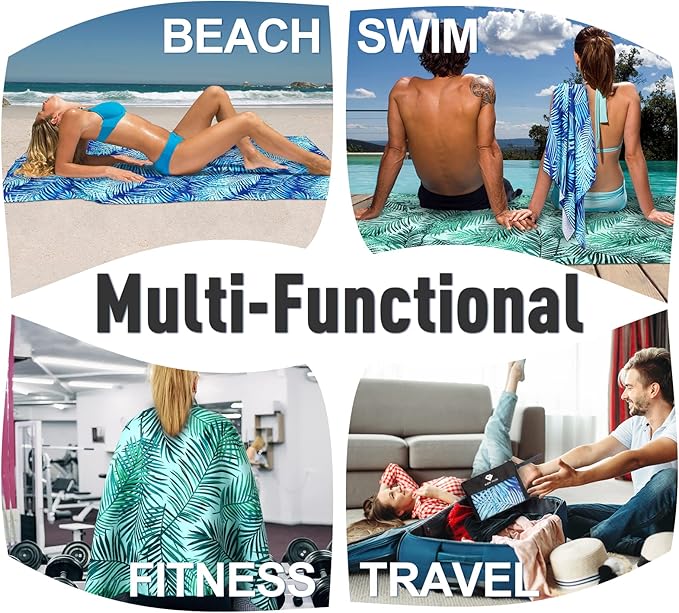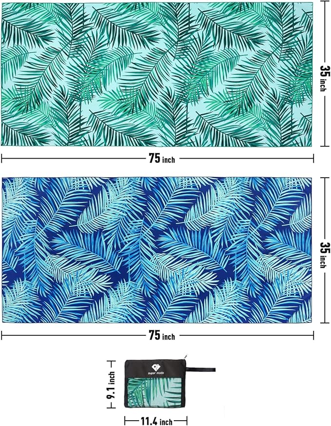 - 【Multi-Purpose Beach Towel 】The beach towel set has an unfolded size of 75"x35", which is ideal for beach recreation, swimming pools, spas, saunas, gyms, yoga, travel, camping, and picnics. It is also ideal as indoor swimming towels.