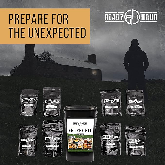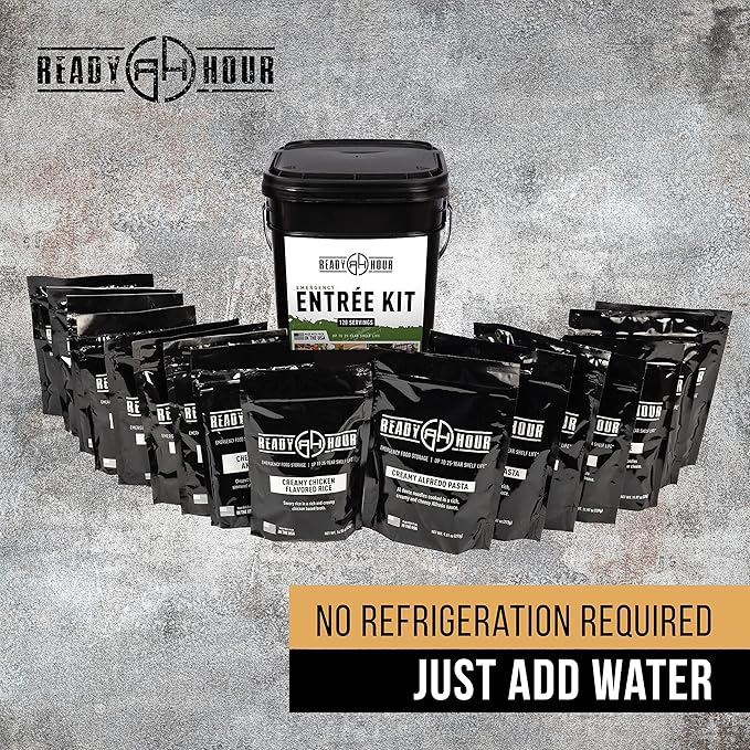 Ready Hour, Emergency Meal Entrées, Real Non-Perishable Meals, 25-Year Shelf Life, Portable Flood-Safe Container, 120 Servings