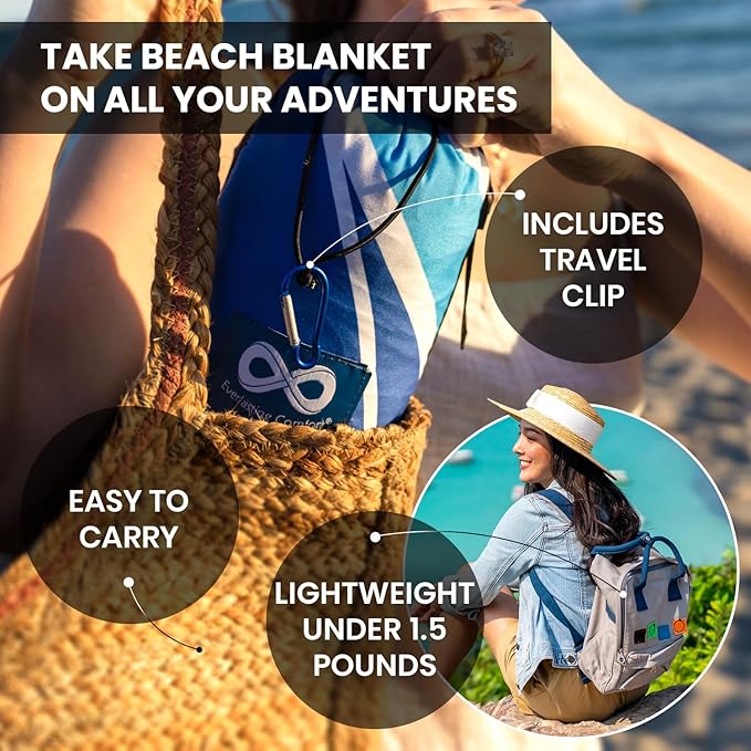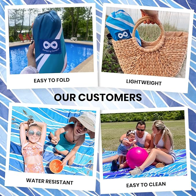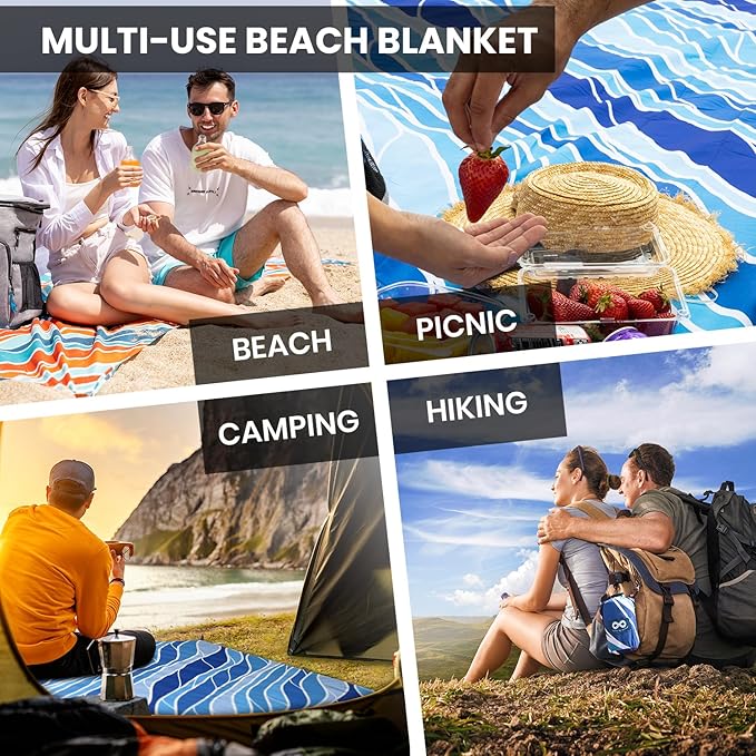 - Waterproof and Sandproof Large Beach Blanket: Shake off liquids and debris easily for a hassle-free beach experience. Keeps all your beach stuff & beach supplies sand-free