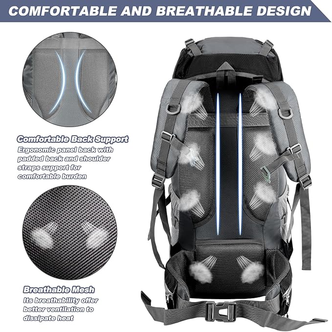 - 【Comfortable & Breathable】Breathable mesh padded with durable open-cell foam on the ergonomic back panel and lumbar offer better ventilation to dissipate heat and give you more comfortable feeling.Thickened shoulder straps and waist belt with plenty sponge padding help to relieve your burden