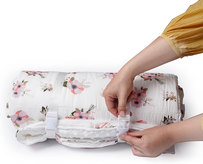 - CONVENIENT FEATURES: Designed to roll-up, velcro close, and carry away with a handle, this nap blanket with pillow is easy to carry to daycare, school, on playdates, or on trips. Our padded nap mat is a toddler and baby essential.