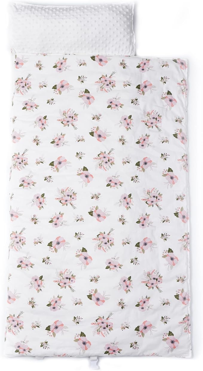 Bunnikins & Clover Toddler Nap Mat with Removable Pillow, Nap Mats for Preschool, Easy Clean Toddler Nap Pad for Kindergarten, Kids Sleeping Bag for Travel Camping