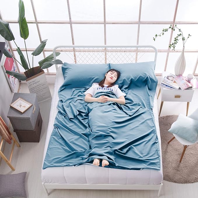 - HUMANIZED DESIGN: The lightweight sleeping travel sheet has two buckles on the top of the sheet,opening on one or two side to make it easy for you to get into. It has an invisible zipper at the bottom for easy ventilation and free movement of your feet.You can open the bottom zipper if you feel hot sleeping in travel sheets.