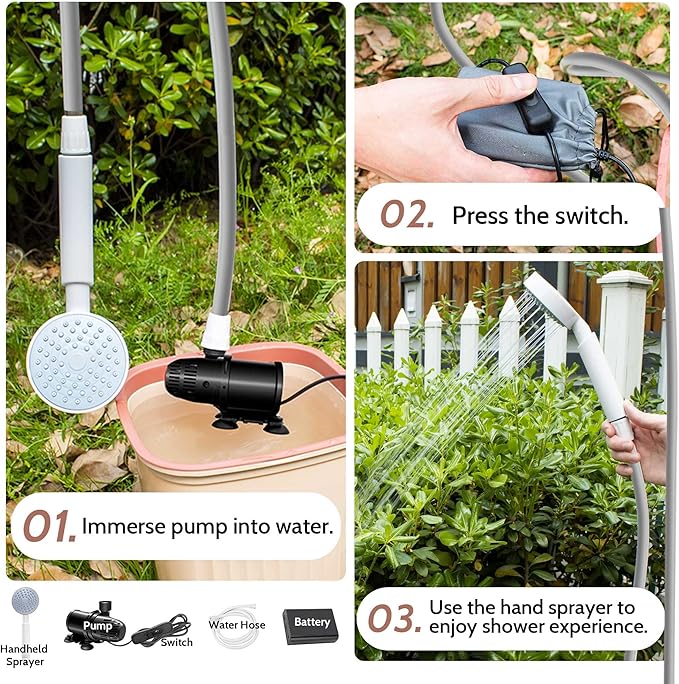 - 【Easy Assemble and Operation】Simply Connect the Shower Hose to the Pump, and Put it into Water, then Use the Remote Control to Start the Pump. The Steam will Come Out of the Sprayer Immediately.