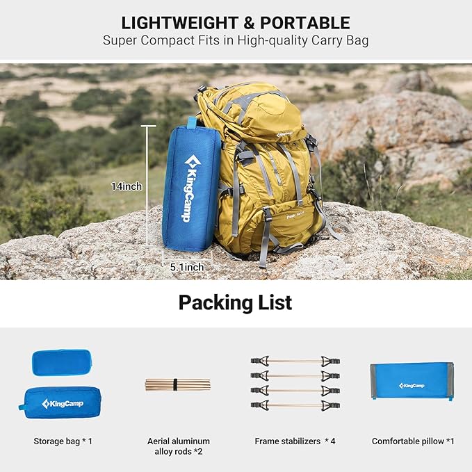 KingCamp Camping Cot, Folding Portable Heavy Duty Ultralight Cots for Adults Camping Tent Hiking Backpacking Mountaineering Travel Indoor Outdoor Indoor Base Camp with Pillow, Support 265 Lbs