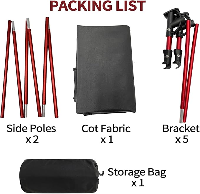 - No tool is needed to assemble the cot, but need your extra effort to insert the bracket into the slots. Disassembly is easy, just take off the brackets and poles, folded up into the included storage bag within 10 seconds.