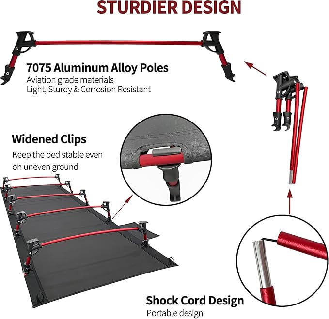 Sutekus Portable Camping Cot Sleeping Cot Ultralight Backpacking Cot Bed for Outdoor Hiking Travel Beach Mountaineering (Black)