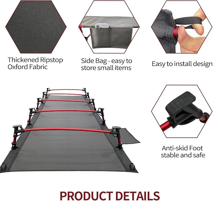Sutekus Portable Camping Cot Sleeping Cot Ultralight Backpacking Cot Bed for Outdoor Hiking Travel Beach Mountaineering (Black)