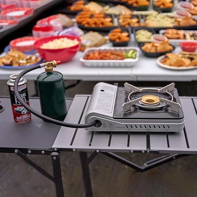 - SAFETY FEATURES - Your safety is our priority, The Grill Boss Dual Camp Stove is equipped with a built-in gas shutoff mechanism that activates if irregular gas flow is detected. Cook with confidence knowing that safety is at the forefront of our design. To maximize safety, it's essential to follow the manufacturer's guidelines and recommendations outlined in the product manual. This includes proper setup, fuel attachment, and maintenance procedures.