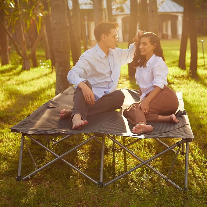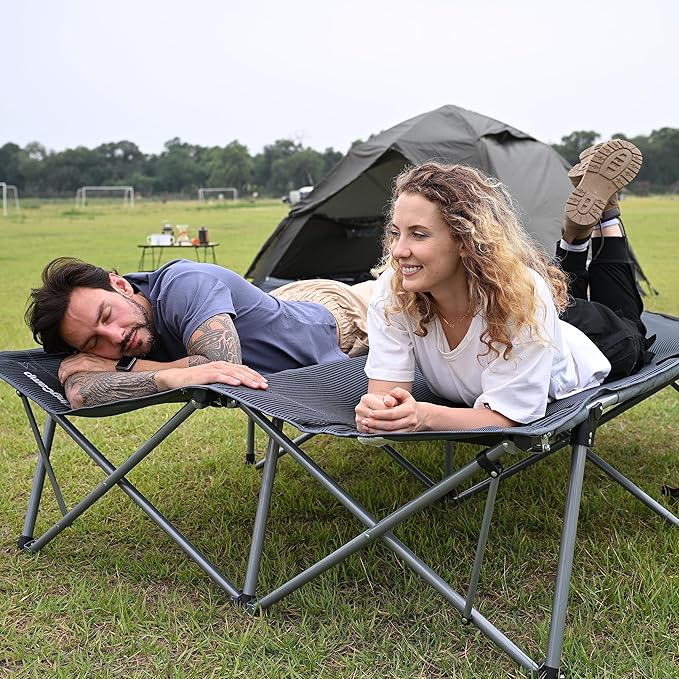 - 【Oversized Queen Design】Measuring 82.6" long and 55" wide, this double cot is 10% longer than most on the market-perfect for tall campers or anyone who values extra room. Comfortably sleeps two adults side-by-side with queen-size spaciousness. Great for couples or solo sleepers who love to sprawl.