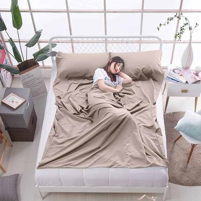 - HUMANIZED DESIGN: The lightweight sleeping travel sheet has two buckles on the top of the sheet,opening on one or two side to make it easy for you to get into. It has an invisible zipper at the bottom for easy ventilation and free movement of your feet.You can open the bottom zipper if you feel hot sleeping in travel sheets.
