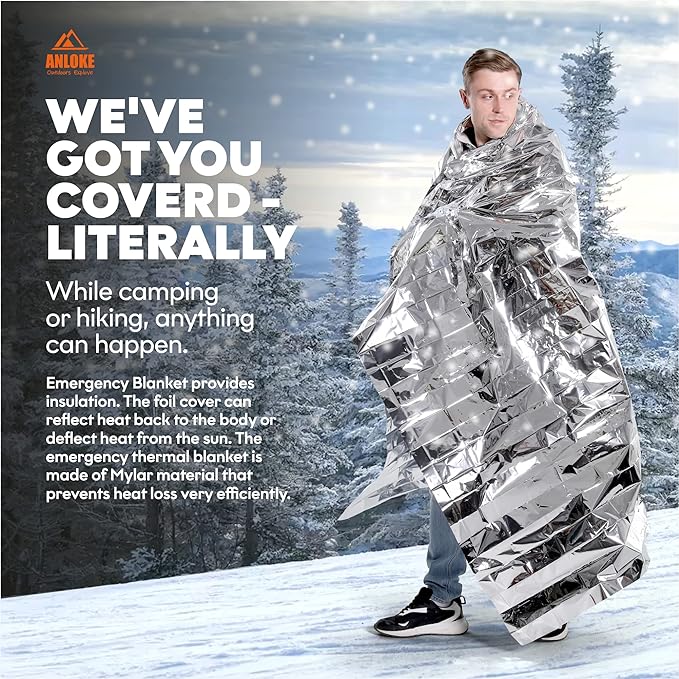 - ★BEST QUALITY★--Durable and advanced aluminized dual-sided emergency mylar thermal space blankets, survival blanket,waterproof and windproof ,it retains up to 90% of your body heat. Perfect for First Aid Kit, bug out bags, go-bags, and home/auto emergency kits.