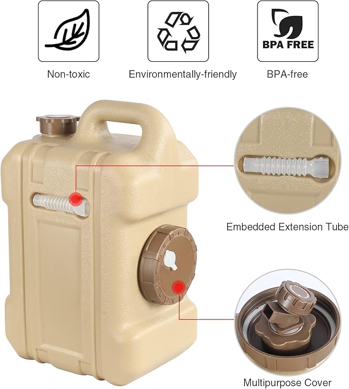 - Food Grade Material: The durable water jug is made of premium PE. This material is BPA free, eco-friendly, soft, odorless, etc. Open the air inlet on the sealing cover when the water is discharged, which can speed up the water output of the faucet.