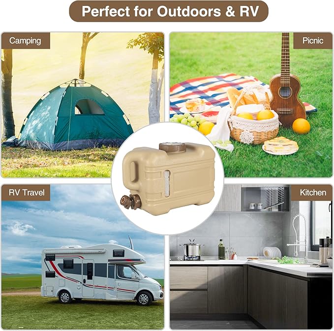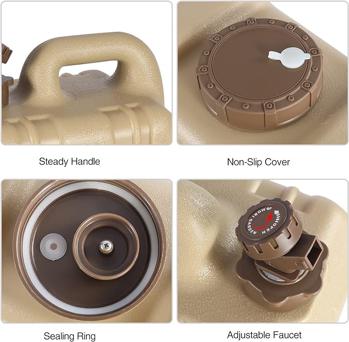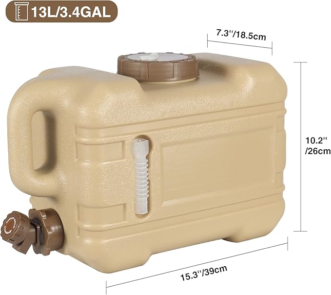 REDCAMP 3.4 Gallon Water Container with Spigot, Portable Emergency Water Storage Tank, BPA Free Water Jug for Camping Outdoor Hiking (13L, Brown)