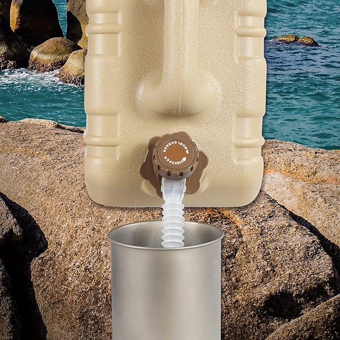 - Distinctive Sealing Cover: The outdoor water jug comes with a water pipe and an adjustable faucet. When not needed, the water pipe can be stored in the groove of the barrel body, and the faucet can be placed in the sealing cover to make storage more convenient.