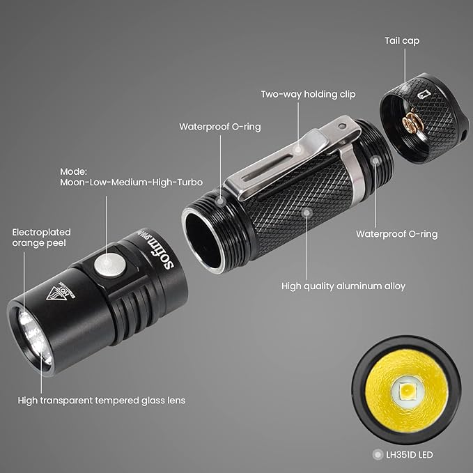 - BATTERY OPTION: Sofirn SP10 Pro is compatible with the AA battery, which you can easily get in a store on the roadside. Also, it features a very low standby drain. Carry it every day and never worry about running out of power.
