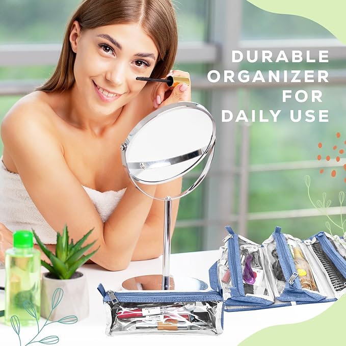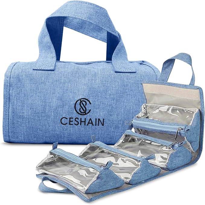 - Space Saver Design- This foldable hanging toiletry bag can store all your travel toiletry essentials giving you more space for your other stuff. Each clear pouch has a large capacity to accommodate necessities. It's a key family travel essential, assuring an organized and minimalistic packing experience.