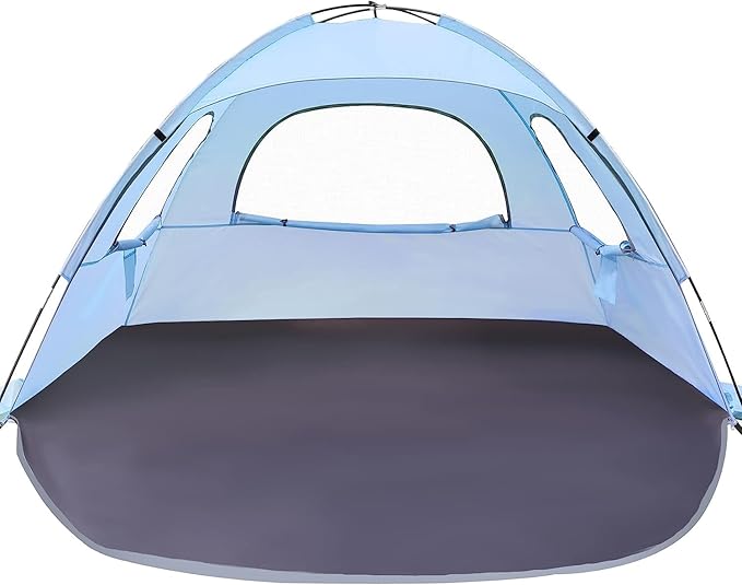 - Omni-directional Zipper for Added Privacy: Our beach tent uses omni-directional zipper design. It allows you to open and close the floor mat from the inside, outside, and as well as from both sides. It’s very convenient to get in and out. The extended front floor provides extra room for more activities, which can be zipped up when you need extra private space, or are away from the tent.