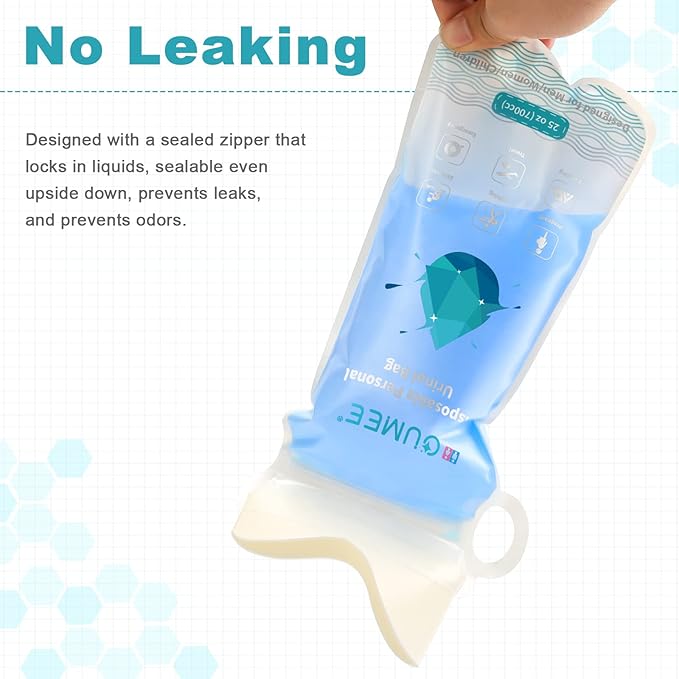 - 🌊Leak-proof - This disposable pee bag is made of safe impervious PE material and designed with a sealed zipper that locks in liquids, sealable even upside down, prevents leaks, and prevents odors.