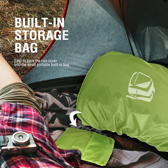 - ✔ Easy to Use and Compact:This waterproof backpack rain cover is easy to be put on and taken off. Each backpack rain cover has a small build-in pouch as a storage bag for rain cover itself.