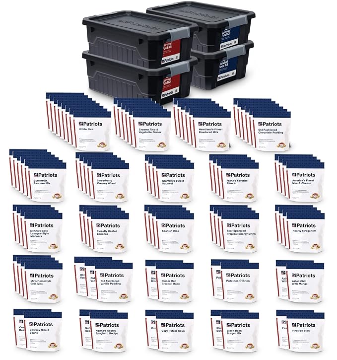 4Patriots 6-Month Survival Food Kit - Emergency Food, Freeze Dried Food, Designed To Last 25 Years, 1,424 Servings Of Breakfast, Lunch, Dinner, 270,080 Calories, Disaster-Resistant Packaging