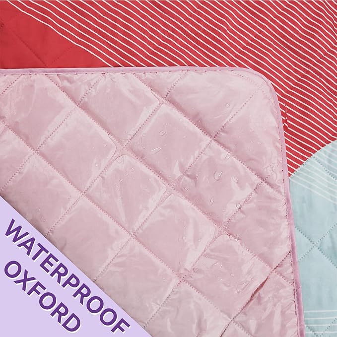 - Waterproof Design: This picnic blanket features a 210D oxford waterproof backing that keeps you dry on damp grass or sandy beaches. The sand-resistant surface ensures a clean and comfortable experience, perfect for outdoor adventures