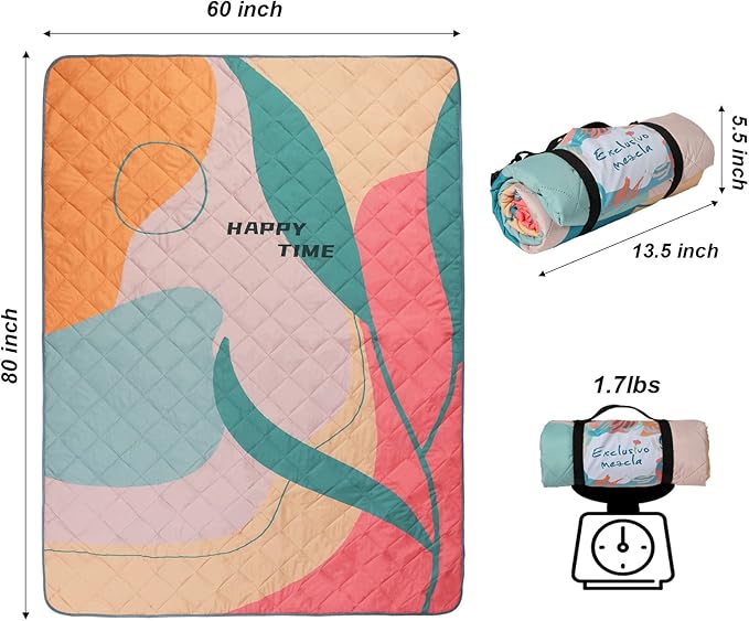 - FUNCTIONAL: Not only beautiful, our picnic blankets are well designed with many thoughtful details. It is waterproof and sandproof to be a perfect outdoor partner.The considerate zipper bag allows more space for some personal belongs. It can also be utilized for indoor activities as crawling blanket, pet blanket, play mat, etc.