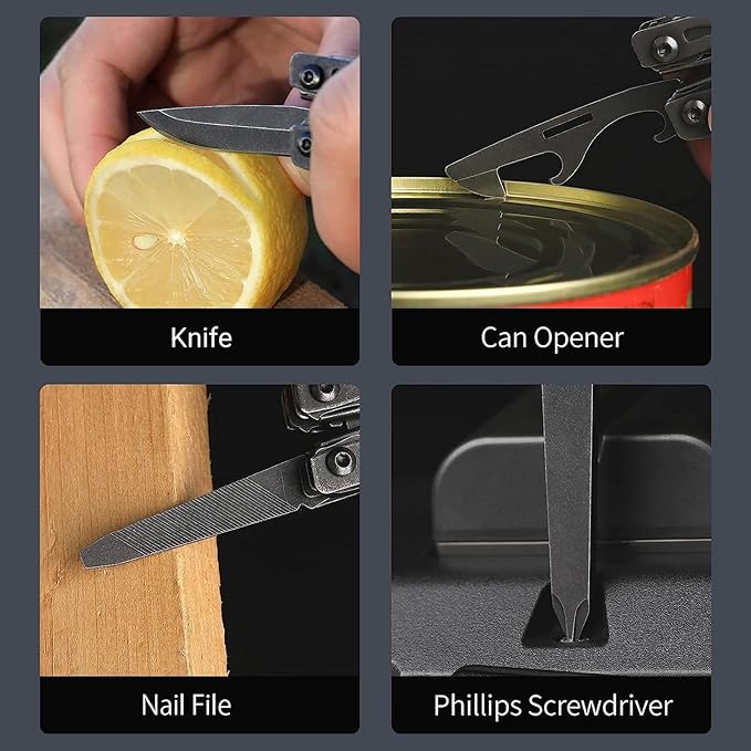 - Included Components : Plier, Knife, Screwdriver, Scissor, Can Opener, Nail File