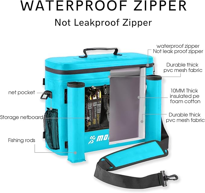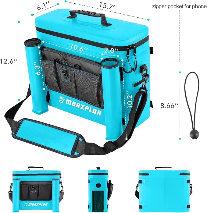 - 【Strong electroweld Structure】Morxplor Seat Back Kayak Cooler Waterproof Zipper and Waterproof Material Protect From Rain Splashes. Simply attach the bungee cord to securely attach seat cooler bag for kayak seat and fit all models of lawn chair seats. Removable storage pockets can hold keys, cell phones and fishing rods.