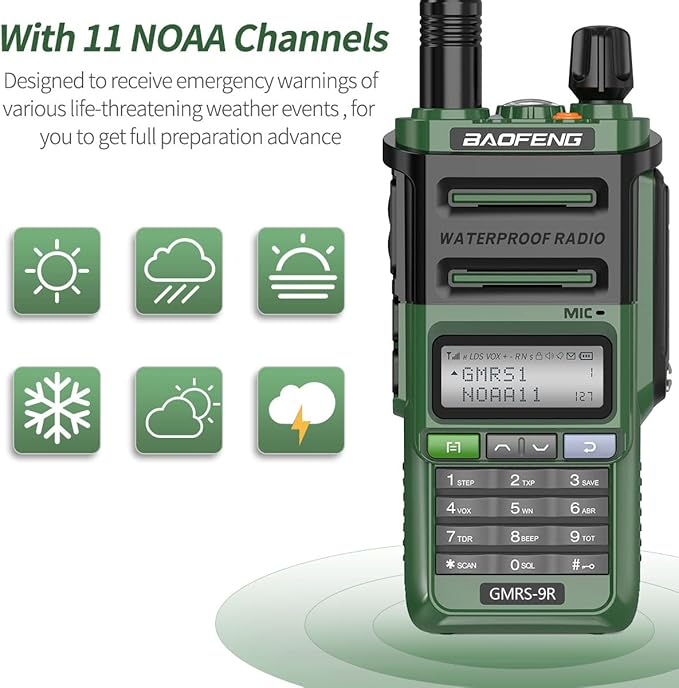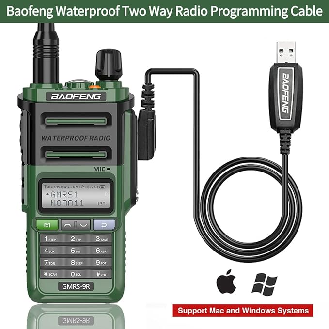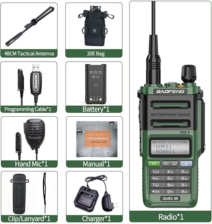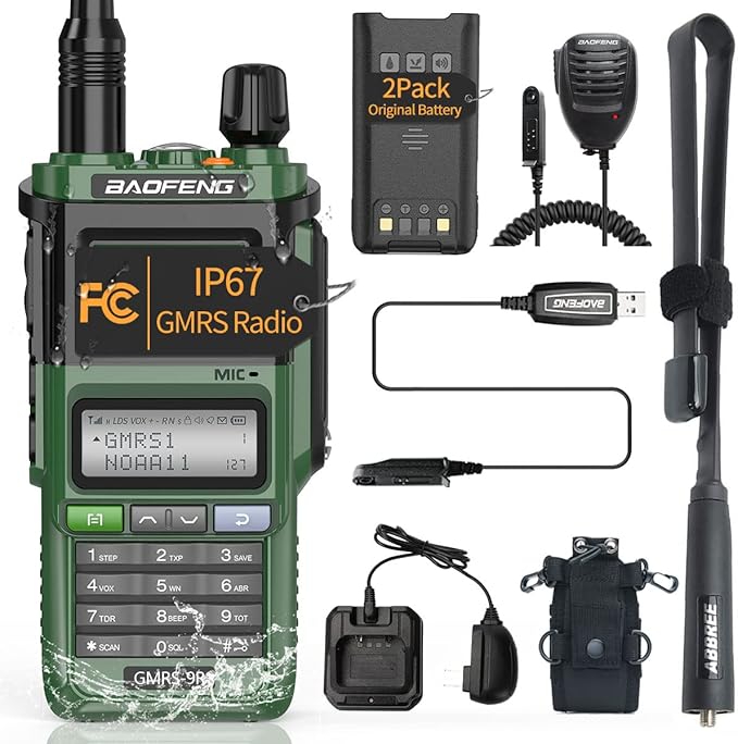 GMRS Radio Baofeng GMRS-9R 5W Rechargeable Two Way Radio for Adults,Waterproof IP67,NOAA Scanning and Receiving with Extra Original Battery,Programming Cable,Tactical Antenna,Speaker Mic,Tactical Bag