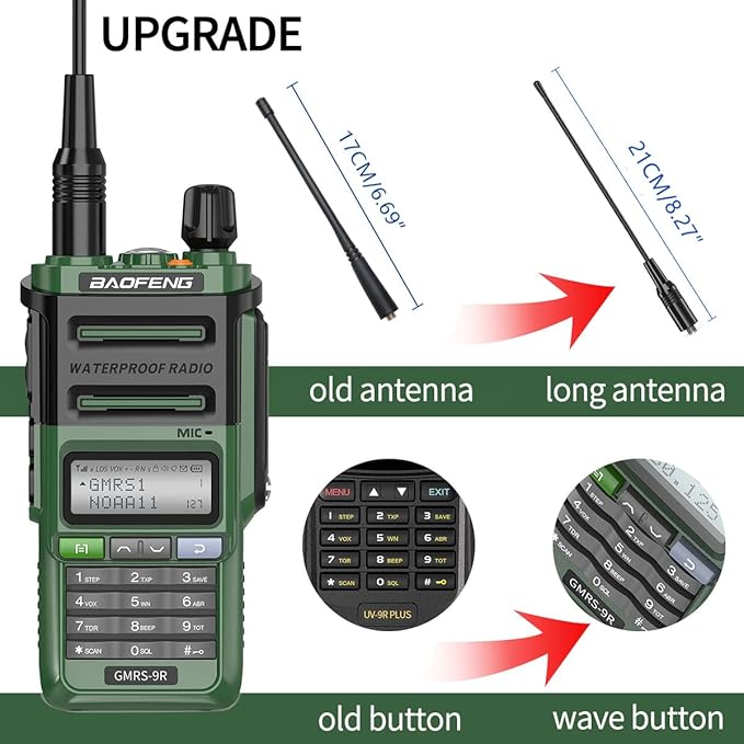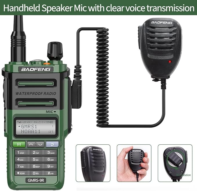 - IP67 Waterproof Feature:9R Plus upgrade version,The GMRS Radio with better waterproof and dustproof capabilities(Not diving),can meet the needs of outdoor sports, camping, mountaineering etc in the bad weather, which ensures the reliability of the walkie-talkie in wet environments.