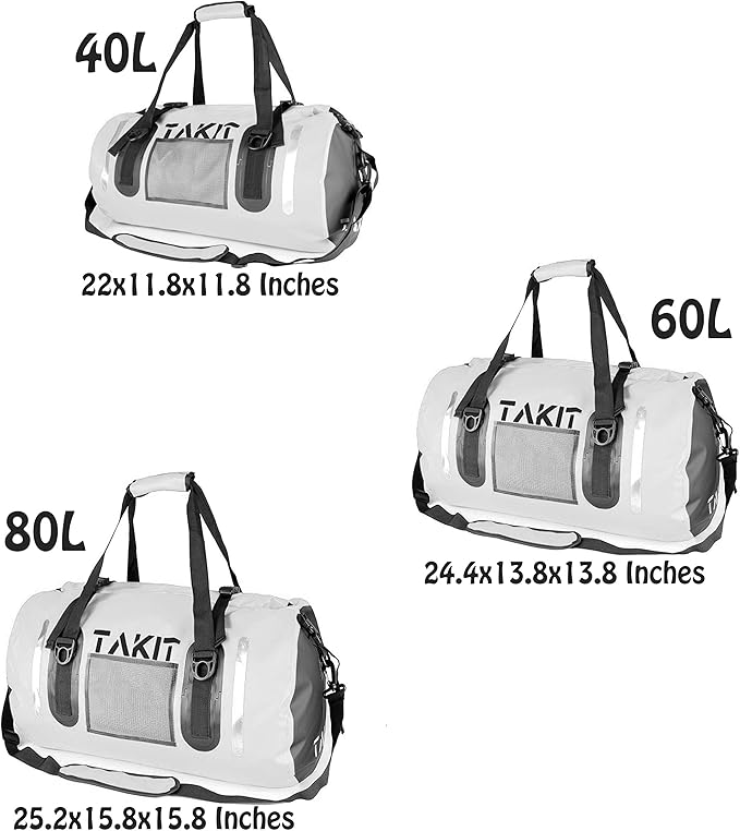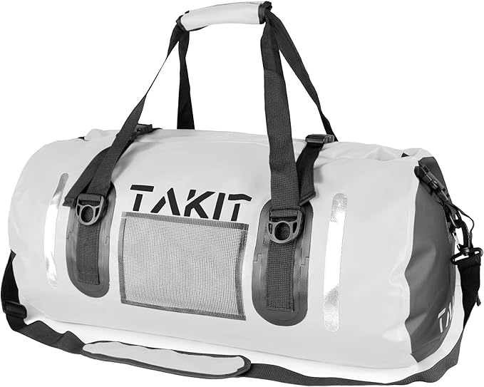 Waterproof Duffle Bag Travel Dry Bag 500D PVC for Motorcycle Tail Kayaking Rafting Boating Swimming Camping Hiking Beach Fishing (White, 60L)