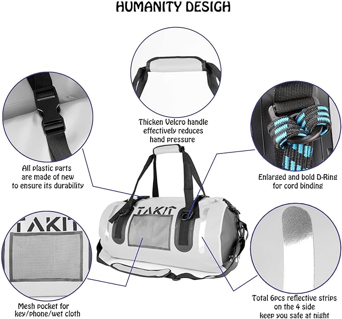 Waterproof Duffle Bag Travel Dry Bag 500D PVC for Motorcycle Tail Kayaking Rafting Boating Swimming Camping Hiking Beach Fishing (White, 40L)