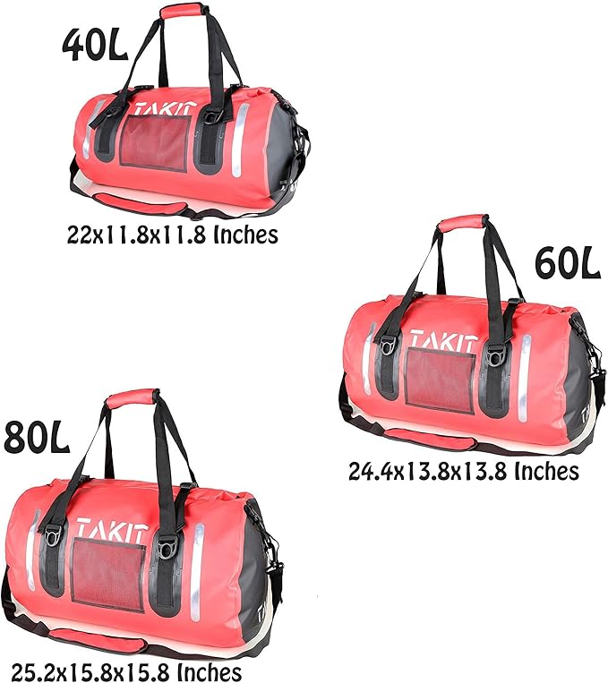 Waterproof Duffle Bag Travel Dry Bag 500D PVC for Motorcycle Tail Kayaking Rafting Boating Swimming Camping Hiking Beach Fishing (Red, 40L)