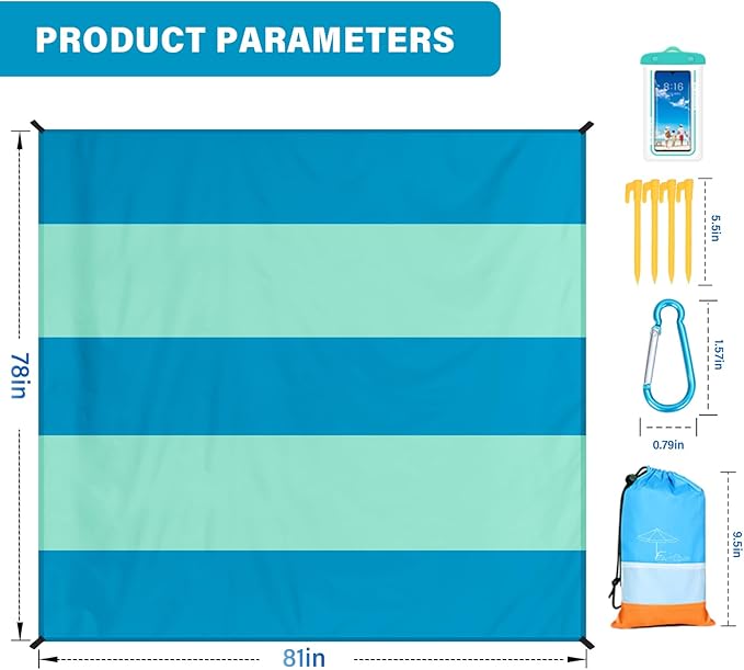 - Beach Blanket Waterproof Sandproof:Dry-Quick,Can also be used as a rain shed,sunshade,tent,toddler crawl,Emergency mat,Feel comfortable lying down.