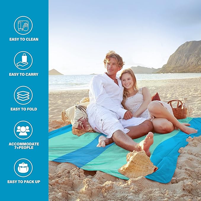 - Oversized Extra Large Beach Blanket :78" X 81"Size,1-7 Adults in total,Made by parachute fabric,More than 30% larger than other blankets,12oz easy to carry!