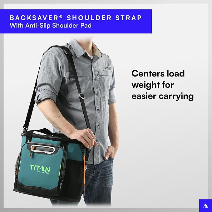 - TITAN DEEP FREEZE TOTE COOLER: Insulated main compartment with easy access hatch for quick access to food and beverages; Includes two mesh side pockets and exterior zippered pocket for extra storage; Keeps ice up to two days and holds up to 24 cans