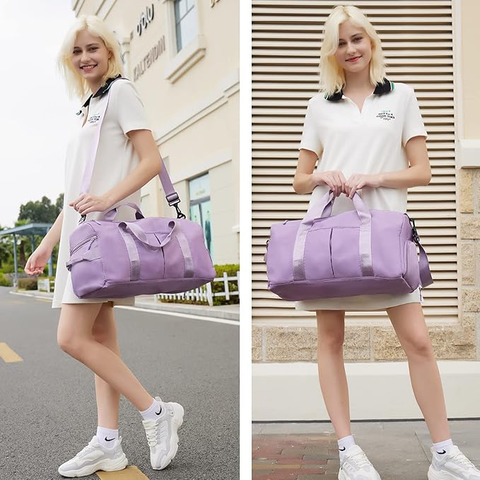 ZGWJ Sports Gym Bag with Wet Pocket & Shoes Compartment, Waterproof Shoulder Weekender Bag for Women and Men Swim Sports Travel Gym Bag Lightweight and easy Carry on Purple
