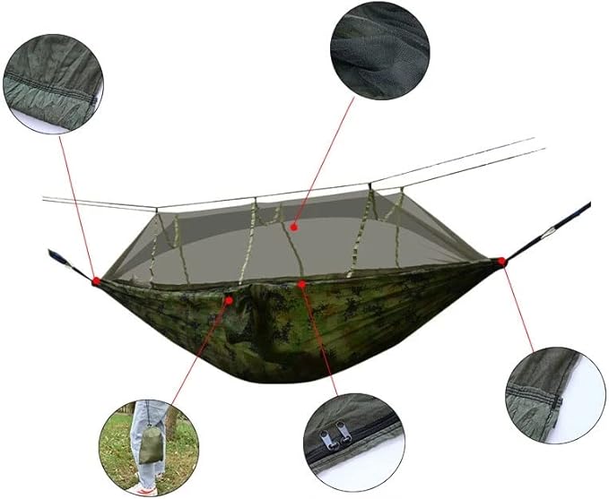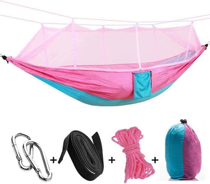 Camping Hammock with Mosquito Net,1-2 Lightweight Portable Outdoor Camping Hammock Nylon Hammock Tent with Tree Straps for Indoor, Camping, Hiking, Backpacking, Beach,Backyard,Pink and Sky Blue